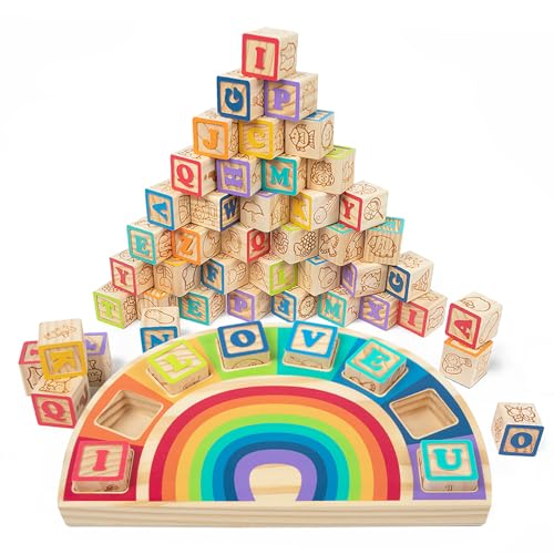 41% OFF Building Blocks Set Wooden Blocks for Toddlers, Rainbow ABC Letter Alphabet | MommyDeals