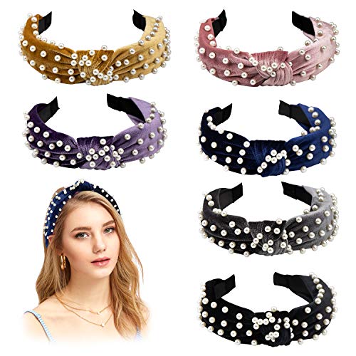 Pearl Headband for Women - 6 Pack Knot Headband with Pearls Wide Headbands Turban Velvet Pearl Headbands for Women and Girls | MommyDeals