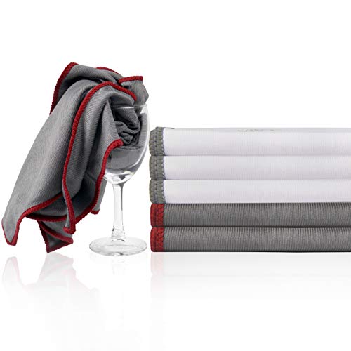 70% OFF LUCKISS Microfiber Glass Towel Wine Glass Polishing Cloth Ultra Absorbent Kitchen Bar Dish Towel,Silverwares and Mirrors 27.5 x 20 inch (6 Pack, Gray/White) | MommyDeals