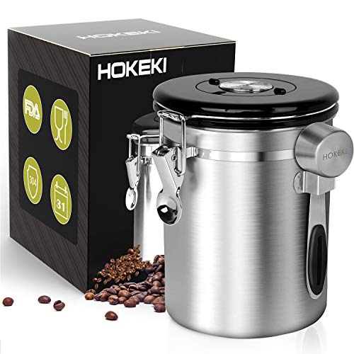 Airtight Coffee Canister, HOKEKI Stainless Steel Container for the Kitchen, Coffee Ground Vault Jar With One Way Co2 Valve And Scoop, Tea Coffee Sugar, Extra Coffee Spoon, 16 oz (Stainless Steel) | MommyDeals