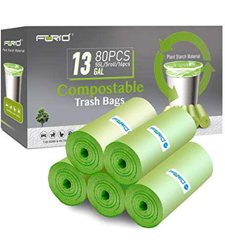 Compostable Trash Bags - FORID 13 Gallon Tall Kitchen Garbage Bags 80 Count Unscented Trash Can Liners 55 Liter Medium Wastebasket Bags for Bathroom Home Bedroom Office Garbage Can (5Rolls/Green) | MommyDeals