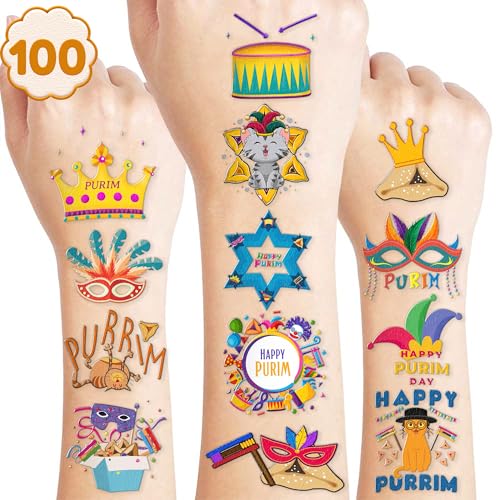 Cute Purim Temporary Tattoos 10 Sheets 100 PCS Happy Purim Party Decorations Favors Supplies Purim Theme Birthday Stickers Halloween Gifts for Boys Girls Kids Class School Prizes Carnival Christmas | MommyDeals