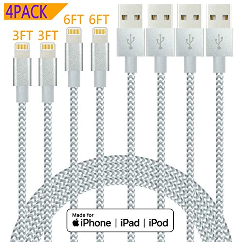 75% OFF IDiSON 4Pack(6ft 6ft 3ft 3ft) Apple MFi Certified iPhone Lightning Cable Braided Nylon Fast Charger Cable Compatible iPhone X XR XS MAX 8 Plus 7 6s 5s 5c Air iPad Mini iPod (Silver White) | MommyDeals