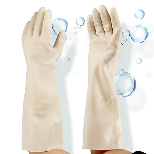 55% OFF Dishwashing Gloves Latex Free, Household Cleaning Gloves, Long Waterproof Kitchen, 15 inch Nitrile Reuseable Gloves Off-White - Middle 3 Pack | MommyDeals