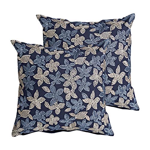 70% OFF MOTINI Decorative Square Throw Pillow Covers Set Blue Embroidered Floral Cushion Covers Accent 100% Cotton Cozy Cushion Cases Textured Pillowcases - Pack of 2-18" x 18" | MommyDeals