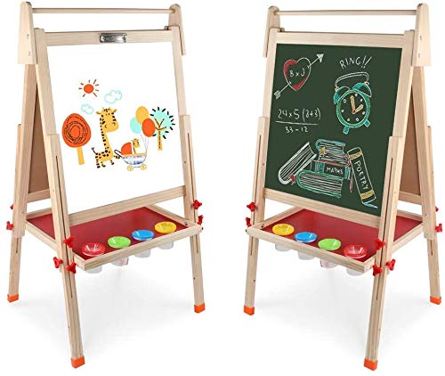 68% OFF Kids Wooden Art Easel Double-Sided Whiteboard and Chalkboard Adjustable Standing Easel with Paper Roll | MommyDeals