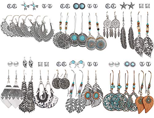 36 Pairs Fashion Vintage Drop Dangle Earrings Set for Women Girls Bohemian Silver Bronze Earrings with Hollow Leaf Waterdrop Turquoise Inlay Jewelry for Birthday/Party/Christmas Gifts | MommyDeals