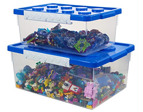 Bins & Things Toy Organizer Set of 2 Large and Small Brick Shaped Storage Containers for Building Brick Storage, Barbie Dolls, hot Wheel, Beyblades, Small Kids Toys - Plastic Kids Toy Chest | MommyDeals
