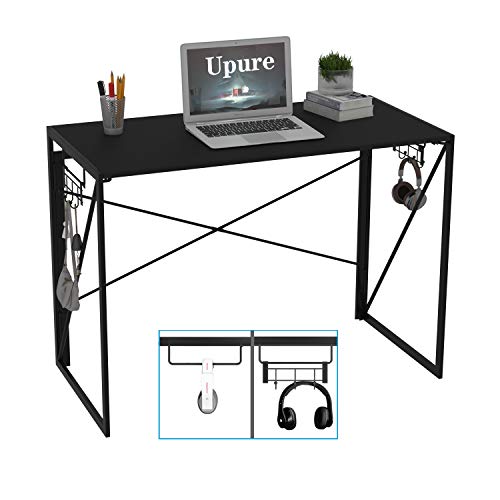 Folding Computer Desk Modern Simple Study Table Foldable Desk Gaming Desk with Removable Hook Home Office Desk 39" Black | MommyDeals