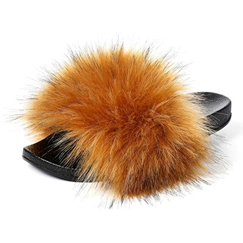 55% OFF Valpeak Fur Slides Slippers for Women Open Toe Furry Fluffy Slides Slippers Girls Fur Sandals Outdoor | MommyDeals