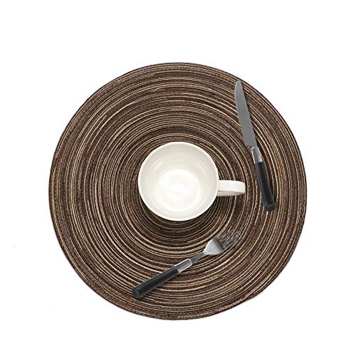 easyum Round Placemats for Dining Table Heat Resistant Wipeable Placemat Washable Kitchen Place Mats Set of 4,Brown Round | MommyDeals