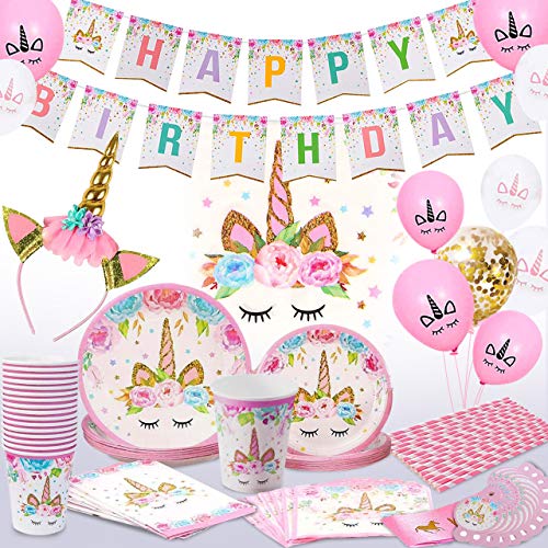 41% OFF Unicorn Birthday Decorations for Girls-Unicorn Party Supplies Set Including Tableware Kit, Birthday Decorations Headband, Shoulder Strap,Unicorn Cake Topper, Disposable Paper Plates, Cups, Napkins, Unicorn Birthday Banner, Serves 16 Guests | MommyDeals