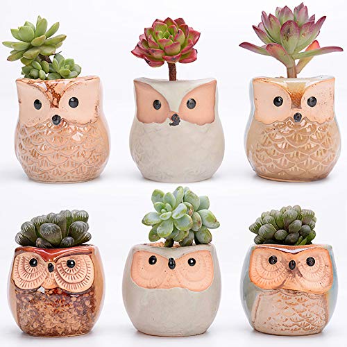 SpeedRobot 2.5 Inch Owl Pot Ceramic Flowing Glaze Base Serial Set Succulent Plant Pot Cactus Plant Pot Flower Pot Container Planter Bonsai Pots with A Hole Gardening Preferred 6 in Set | MommyDeals