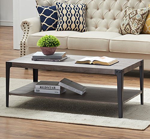 62% OFF O&K Furniture 47.8" Industrial Rectangular Cocktail Coffee Table with Storage Shelf for Living Room, Gray Finish | MommyDeals