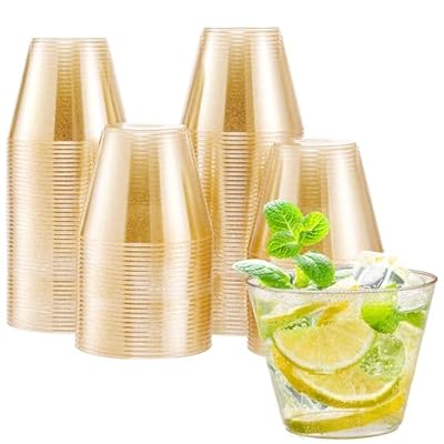 9OZ Gold Plastic Party Cups, Glitter Fancy Plastic Drinking Cups (100 Pack) | MommyDeals