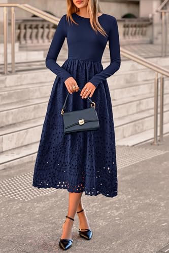 60% OFF Women Long Sleeve Crewneck A-Line Eyelet Dress | MommyDeals