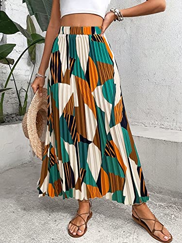 Women's Boho Geo Print Pleated Maxi Skirt | MommyDeals