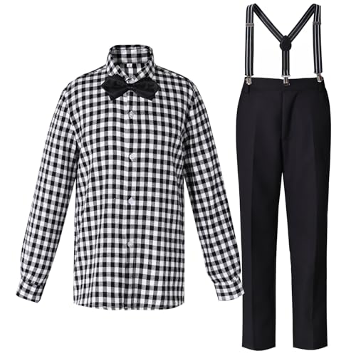 55% OFF Boys Cotton Plaid Button Down Shirt Suspender Pants Suit | MommyDeals
