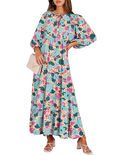 Women Puff Sleeve Floral Flowy Long Dress | MommyDeals