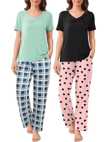Women Short Sleeve with Long Pants Pjs Set - 4 pcs | MommyDeals