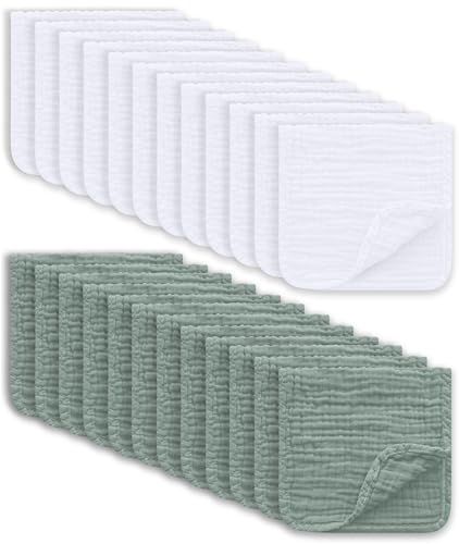 62% OFF Muslin Burp Cloths Large 100% Cotton Hand Washcloths, White & Green, 24-Pack, 20" X10" | MommyDeals